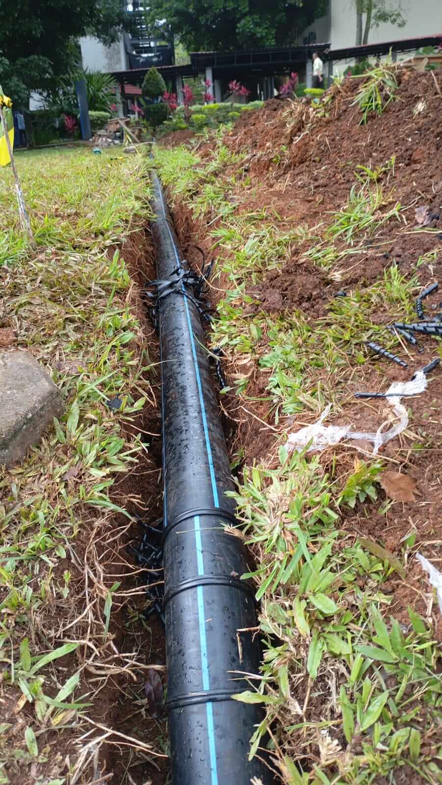 - Pipa HDPE (biasanya ukuran 20mm atau 1/2 inch):Material yang paling umum digunakan karena lentur, tahan karat, dan minim sambungan (tersedia dalam bentuk rol).